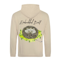Twin needle stitching detailing. Double fabric hood with self coloured cords. Kangaroo pouch pocket. Ribbed cuffs and hem. Also available in kids'